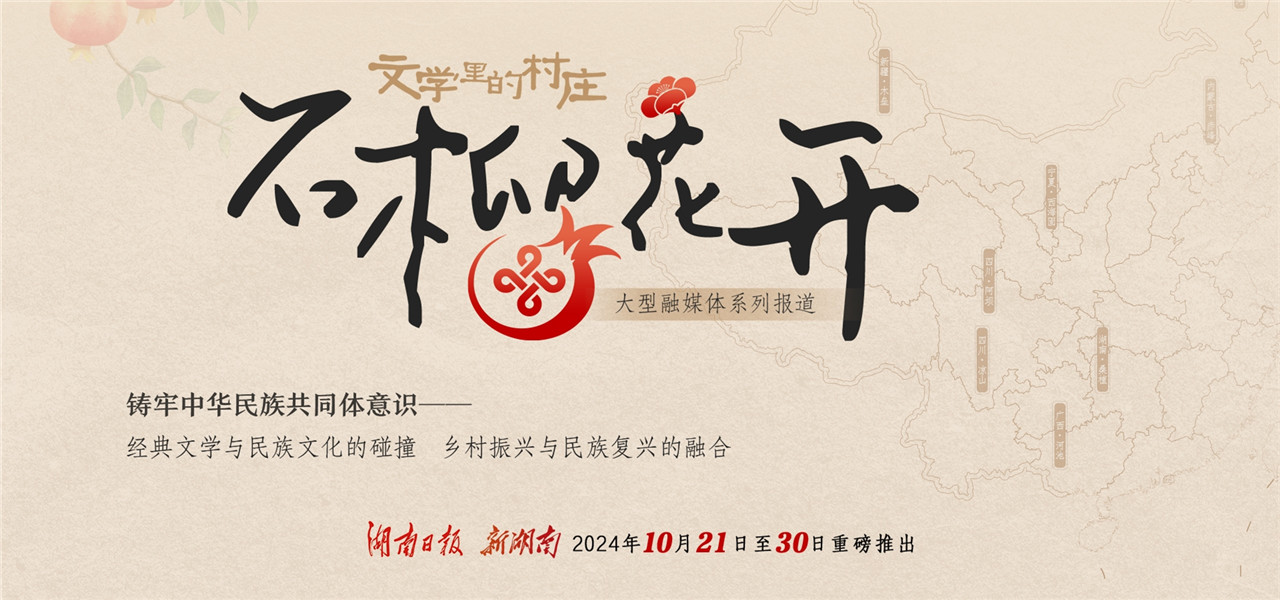 在習(xí)近平總書記鮮明提出“中華民族共同體意識”10周年及文藝工作座談會召開10周年之際,在全國民族團(tuán)結(jié)進(jìn)步表彰大會剛剛落幕之時,湖南日報精選8位作家和他們多個獎項的作品,派出8路融媒體團(tuán)隊,奔赴多彩的民族村莊進(jìn)行采訪。精選民族經(jīng)典,穿越大美中國。自10月21日起,湖南日報推出《文學(xué)里的村莊·石榴花開》大型融媒體系列報道,書寫民族村莊的時代巨變,描繪各民族如石榴籽一樣緊緊抱在一起,共建美好家園的壯美畫卷。
