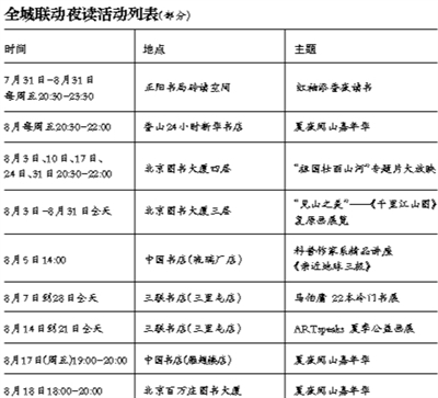 由書香中國·北京閱讀季組織策劃的“夏夜閱山嘉年華”活動,8月2日在北京香山腳下的新華書店24小時店正式啟動,將貫穿整個8月。