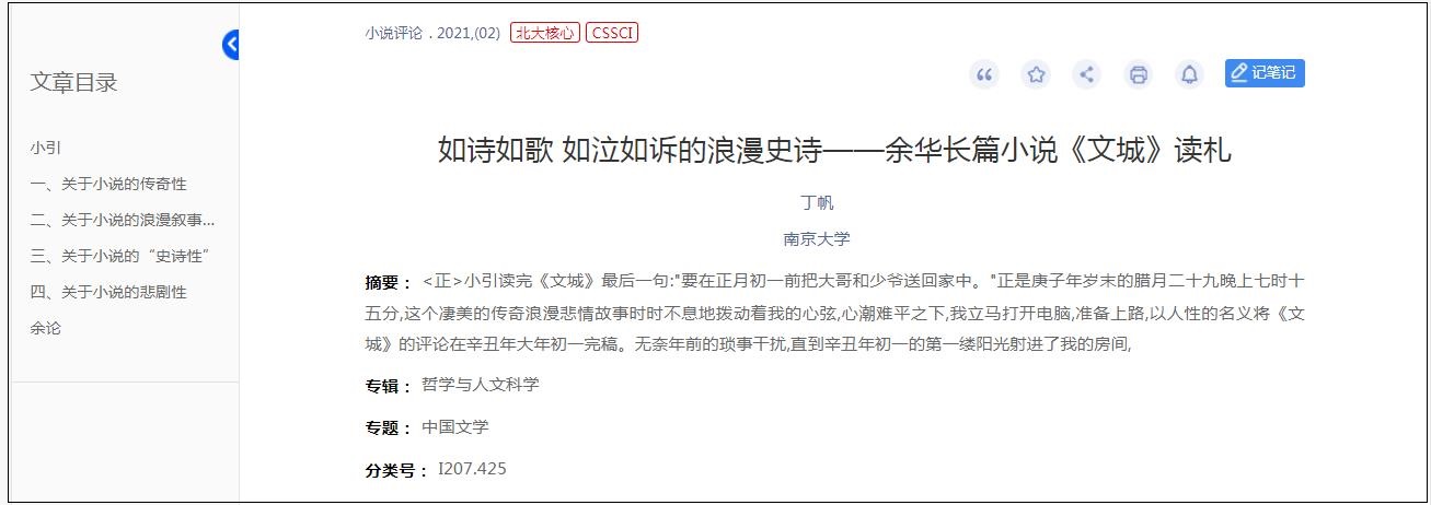 丁帆《如詩如歌 如泣如訴的浪漫史詩——余華長篇小說<文城>讀札》,發(fā)表于《小說評論》2021年第2期。