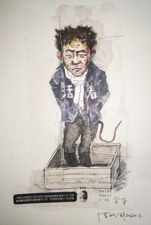 金赫楠注意到,《文城》隨書夾贈的書簽上印著一幅余華畫像,畫中余華的上衣正面赫然印著兩個醒目的大字“活著”——這是在暗示“活著”已經(jīng)同小說家余華徹底地互為表里? (書簽作品為藝術家張曉剛為余華創(chuàng)作的生肖鼠漫畫)