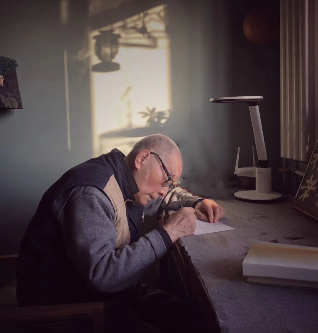 第二天我打好腹稿心事重重,下午早早地第二次進(jìn)入這個(gè)家門。老先生見到我趕緊迎上來,眼睛亮亮的滿是期許,臉上洋溢著從心底生出的歡喜。我不敢看他的眼睛,也沒敢先說話。他坐在離陽(yáng)臺(tái)寫字桌近的轉(zhuǎn)椅上,沉穩(wěn)自如,我坐在他的側(cè)面,不看他的臉。