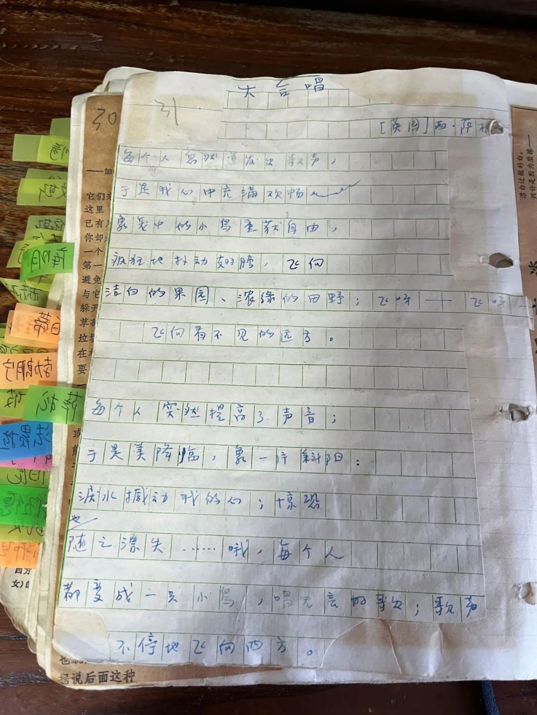 我守著他留下的這十幾本日記,還有他不少未出版過的從很年輕時(shí)陸陸續(xù)續(xù)星星點(diǎn)點(diǎn)譯出的自己喜歡的詩(shī)。幾十年的老本子,他親手剪報(bào)粘貼整理的詩(shī)集譯稿,我捧在手中,淚水不小心滴在上面。