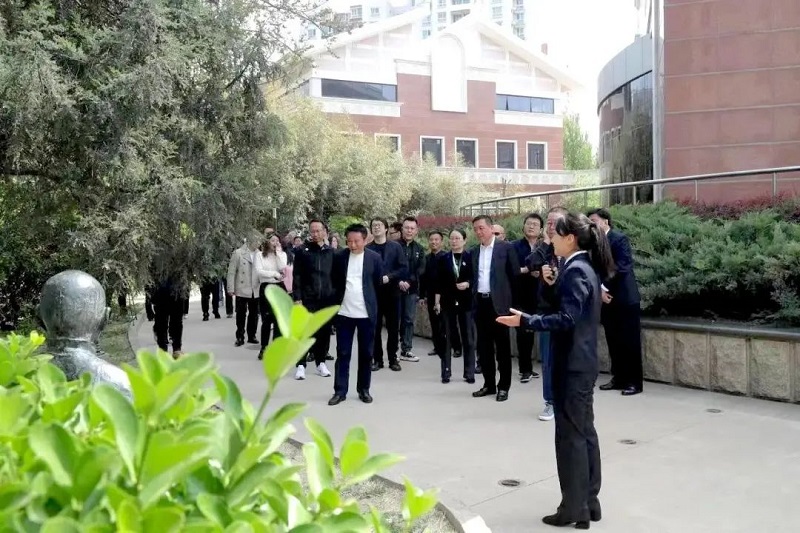 歡迎儀式后,大家移步中國現代文學館庭院。院內散落著13尊中國現代作家雕塑,劇作家們依次走到塑像前,向文學前輩們致敬,表達由衷的敬意。隨后,大家進入中國現代文學館展廳,先后參觀了中國現當代文學展、現代作家書房展等常設展覽。