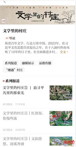 千呼萬喚始出來,4510月23日,《文學里的村莊》大型融媒體系列報道以首篇報道《穿行在魯迅的“故園”》,正式拉開帷幕。此后,接連發布《滿城盡是紅高粱》《文韻悠悠,清溪奔涌》《紅旗渠,你慢些流》《追尋平凡里的那束光》4個篇章。