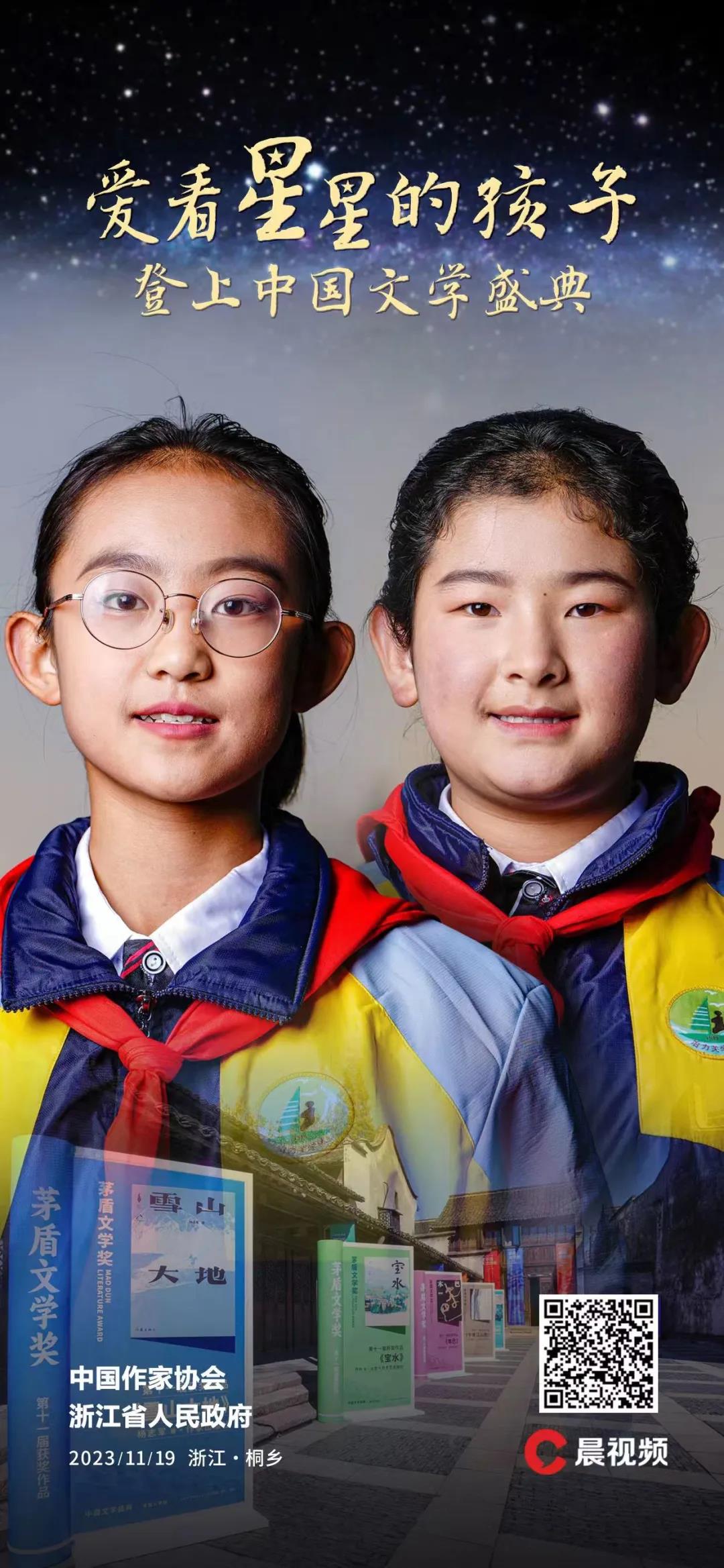 11月19日晚,“2023中國文學盛典·茅盾文學獎之夜”,清澈的童聲蕩漾在浙江省桐鄉市烏鎮。13個來自甘肅省甘南藏族自治州臨潭縣冶力關鎮中心小學的孩子,手托發光的“星星”,跟作家茅盾母校烏鎮植材小學的孩子們合唱《夜空中最亮的星》。他們說,“我們的家鄉很美,那里的星星很漂亮,歡迎來我們的家鄉,寫我們的故事”。那一刻,他們就是舞臺上耀眼的“星星”。