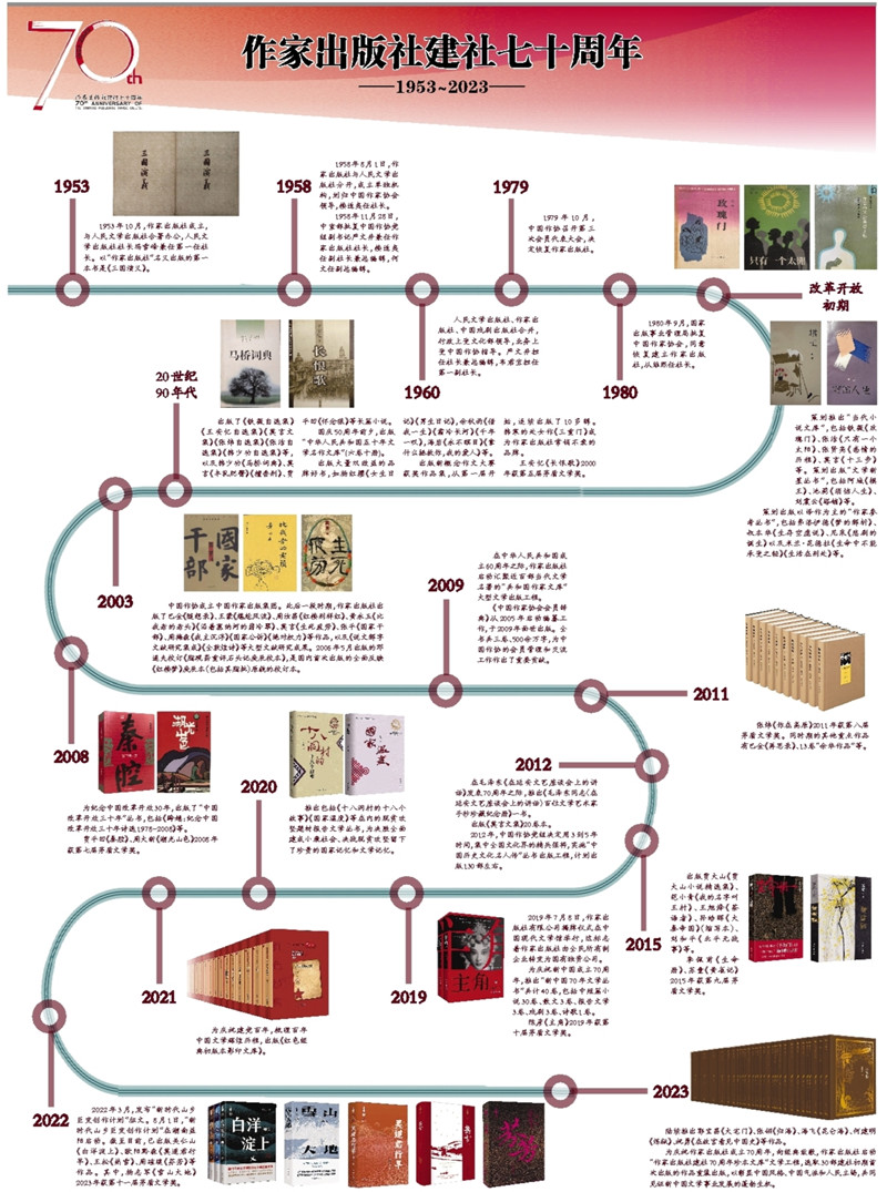 11月的最后一天,中國現代文學館高朋滿座,來自五湖四海的文學同道共聚一堂,齊賀作家出版社七十周年。七十年來,一代又一代編輯、出版人陪同寫作者一道,記錄文學事業發展的輝煌歷程。關于作家社的更多記憶,也請朋友們在《作家出版社建社七十周年大事記》一文中按圖索驥。