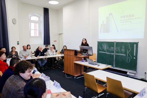 海德堡大學是德國最古老的大學,建于1386年,是德國浪漫主義與人文主義的象征,也是歐洲最重要的學術中心之一。在海德堡大學孔子學院外方院長丁蕾(Petra Thiel)博士主持下,范穩、徐坤和弋舟分別介紹了自己的創作經歷,以及各自作品中關于歷史、文化的想象和探索。海德堡大學亞洲與跨文化研究中心中國研究所所長芭芭拉·米特勒教授、亞洲與跨文化研究中心"創造世界"項目研究員兼博士后薩拉·蘭達博士、南亞研究所馬丁·及瑟曼博士等參與文學對話,并介紹了他們關于中國文學、亞洲文化、中德文化交流等相關領域的思考與設想。海德堡大學的青年學生踴躍向3位中國作家提問交流。活動現場,漢學家呂海粟等還當場表示了想翻譯弋舟短篇小說《出警》等作品的意愿。中國作家們還向海德堡大學圖書館贈送了簽名圖書,受到圖書館館長的熱烈歡迎。