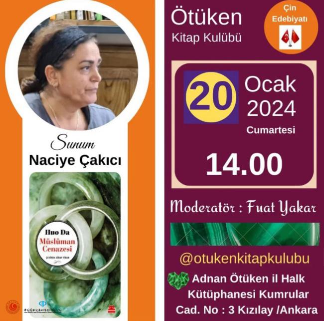 近日,由中國作家協會外聯部指導,中國圖書進出口(集團)有限公司和土耳其“中國文學讀者俱樂部”聯合土耳其于都斤 (?tüken)讀書俱樂部共同組織的《穆斯林的葬禮》讀書分享會在土耳其成功舉辦。于都斤讀書俱樂部負責人富阿特·亞卡爾、土耳其民俗學家納齊耶·恰基奇作為嘉賓參加活動并圍繞該書的文化背景、故事情節、哲學思想等進行分享。當地作家、文化藝術家和讀者等共40多人參加了此次活動。