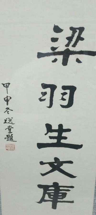 此次拜訪結束后不久,2004年冬,梁羽生在港拜會了自己的老師饒宗頤先生時,告知老師自己準備將絕大部分文學資料捐贈給北京中國現代文學館“梁羽生文庫”,讓自己這些珍貴的文學資料落葉歸根,回歸故土。饒先生聽后,很是感動,他表示要親自為“梁羽生文庫”題名。沒過多久,饒宗頤先生便將自己寫好的“梁羽生文庫”送于梁羽生。