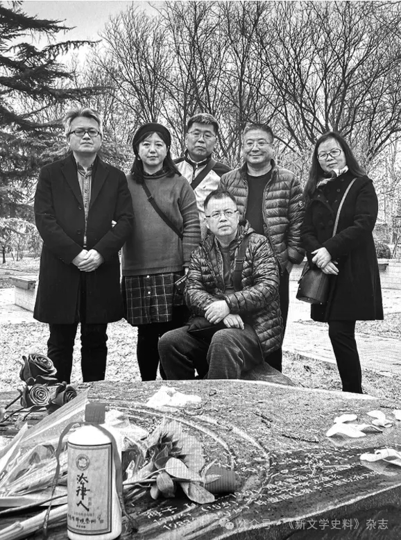 與海子同時代的校友、詩友們在法大昌平校園海子石碑前祭奠,左二為本文作者,2021年3月26日