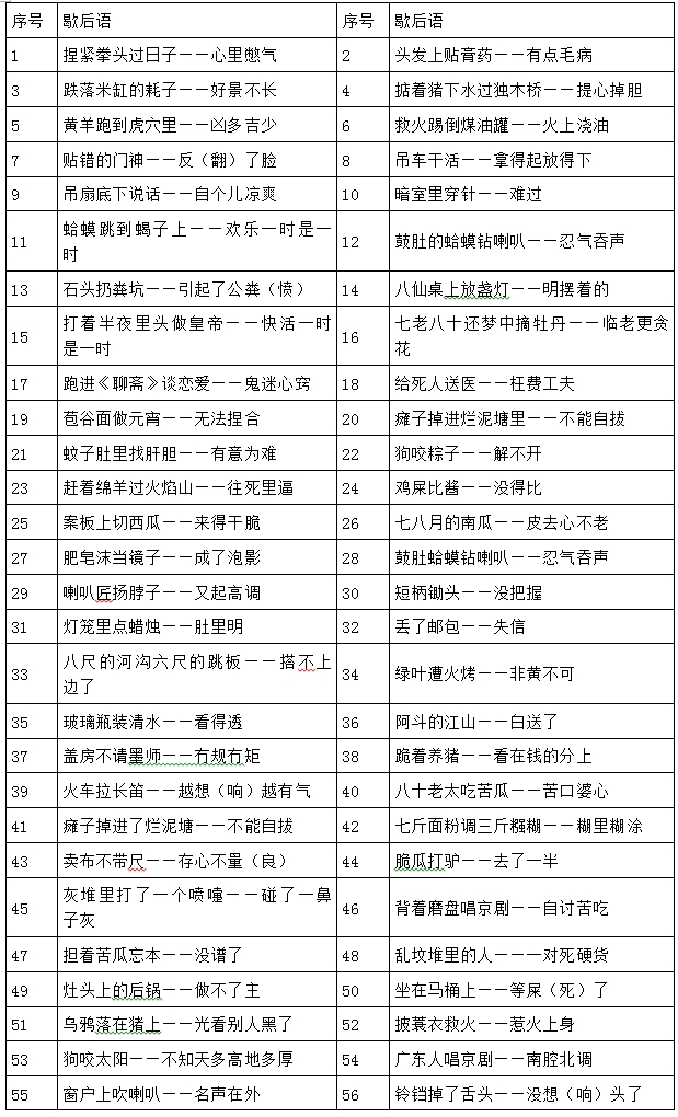 表一 《客鄉(xiāng)風(fēng)月》歇后語(yǔ)(部分)
