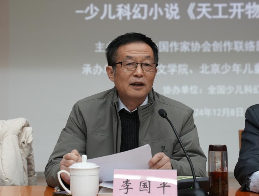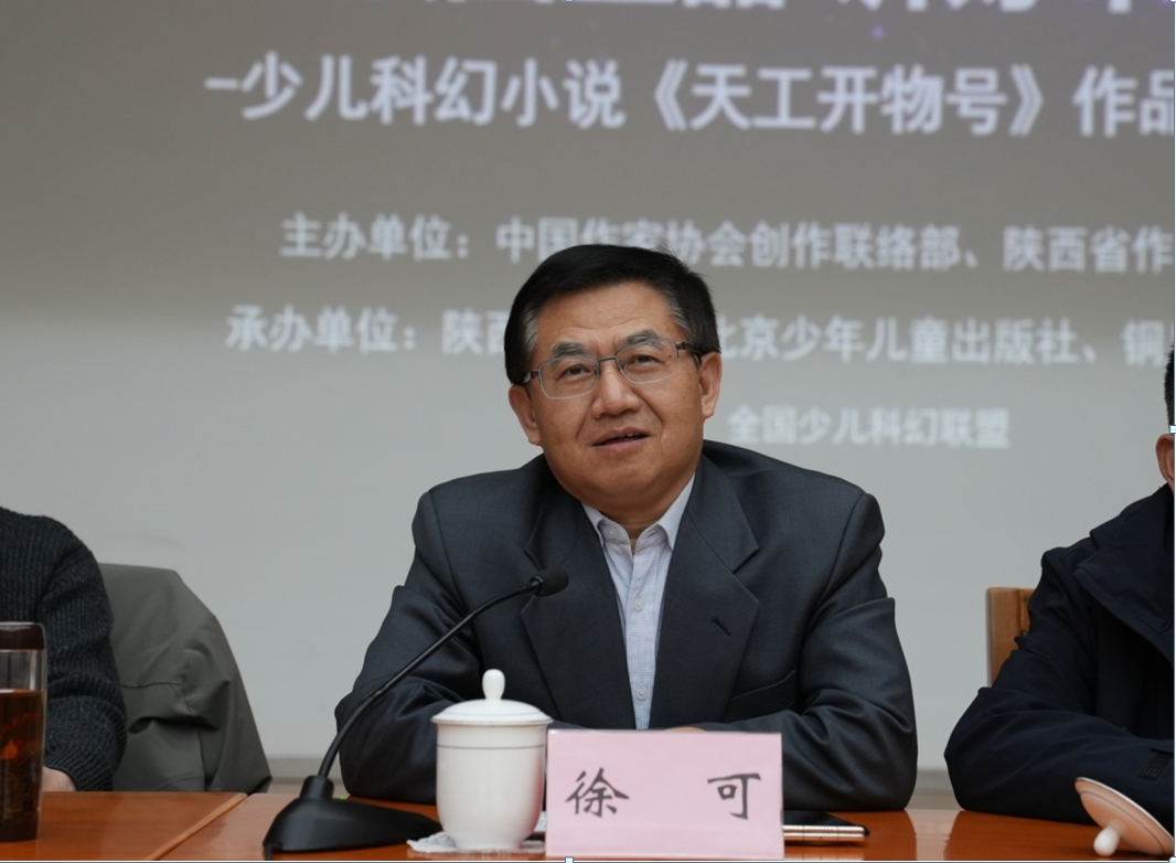 12月8日,由中國作家協會創聯部、陜西省作家協會主辦,陜西文學院、北京少年兒童出版社、銅川市作家協會承辦,全國少兒科幻聯盟協辦的“書寫強國重器,講好中國故事”張軍長篇少兒科幻小說《天工開物號》作品分享會在北京魯迅文學院舉行。中國作家協會創聯部主任彭學明,魯迅文學院常務副院長徐可,陜西省作協副主席李國平,北京少年兒童出版社社長劉衛弘、常務副總編戴迪玲,《科普時報》社長尹傳紅,中國作家協會創研部副主任納楊,魯迅文學院副院長周長超,銅川市文聯(作協)黨組書記、主席楊曉軍、副主席劉娜,中國科學技術出版社科幻分社社長王衛英,北京師范大學文學院副院長、評論家張莉,《科普創作》執行主編姚利芬,陜西文學院常務副院長韓霽虹,陜西師范大學教授李震,北京市作協駐會副主席周敏,山西文藝評論家協會副主席崔昕平,中國作協兒委會委員陳詩哥,少兒科幻星云獎組委會秘書長阿賢,少兒科幻作家趙華、超俠、陸楊、左文萍,本書作者張軍(筆名:小高鬼)等40余人與會。會議由北京少年兒童出版社副社長馬姍姍主持。