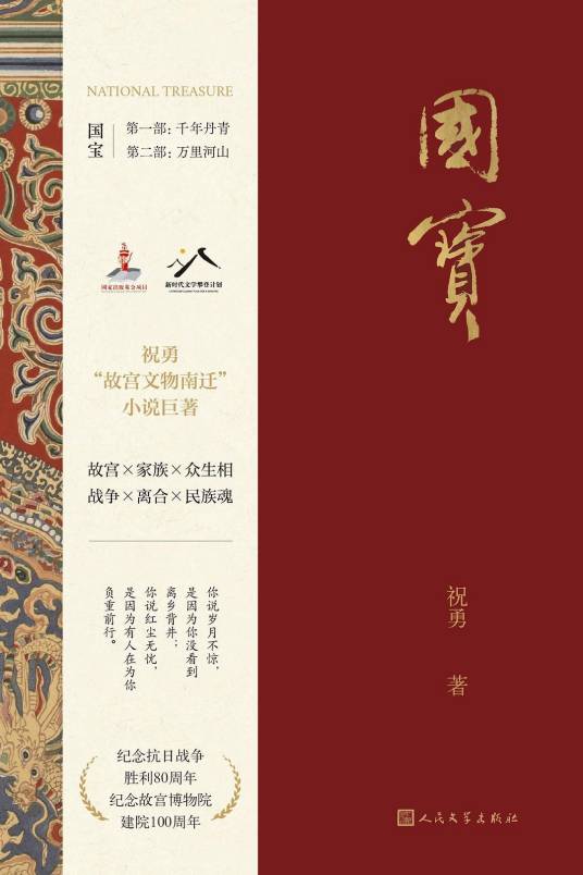 《國寶》通過一個家庭的悲歡離合、聚散流徙,講述其因南遷而波瀾飄搖的家族史,以小見大,以家映國,從煙火日常的民間立場見證磅礴滄桑的近代中國。祝勇用豐贍的細節(jié)還原歷史現(xiàn)場,以精彩的故事重建南遷之路,投筆一代“故宮人”的守藏之心于紙上,大義凜然,根魂畢現(xiàn)。