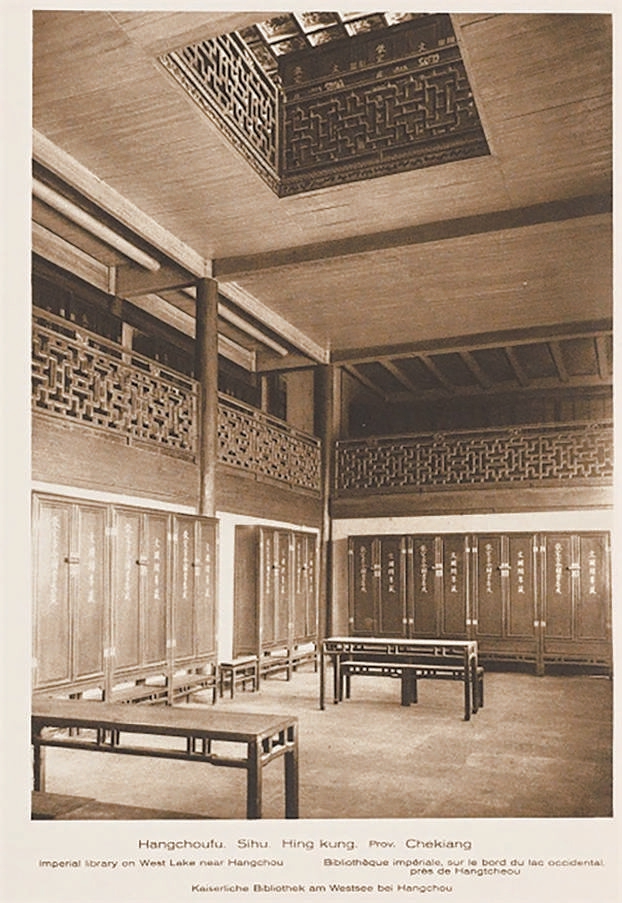 1909年拍攝的文瀾閣內(nèi)部,《四庫全書》和書櫥都在。
