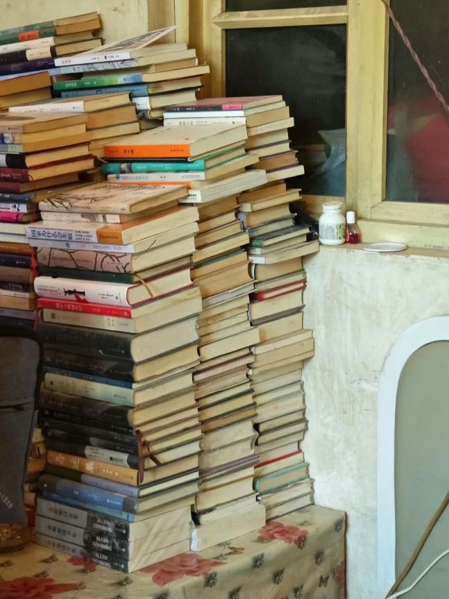 曹兵房間距離床榻咫尺的地方摞滿書籍