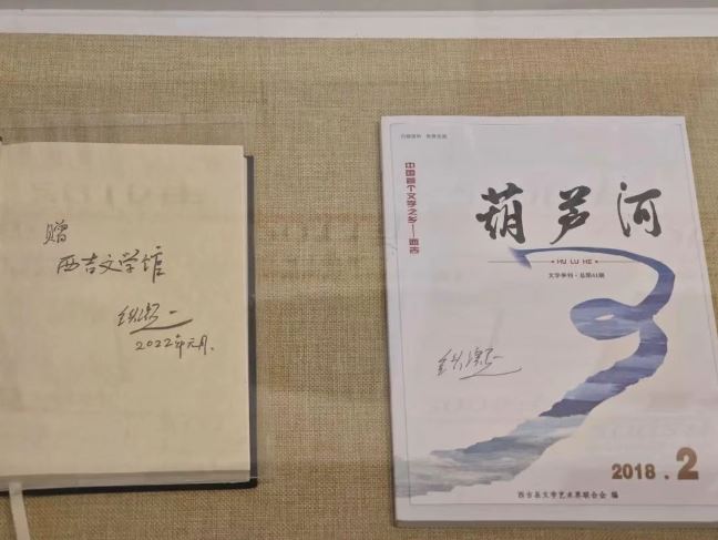 西吉文學(xué)館內(nèi)展出鐵凝在封面簽名的文學(xué)內(nèi)刊《葫蘆河》