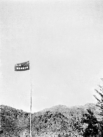 1941年,華北聯大校旗高高飄揚。 沙飛攝