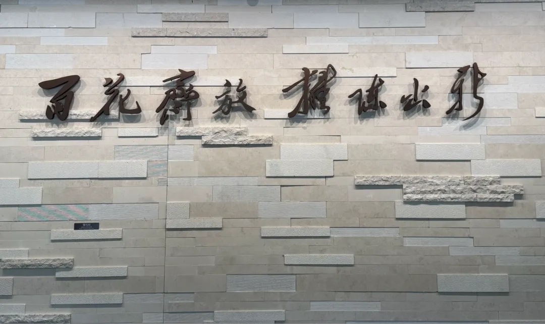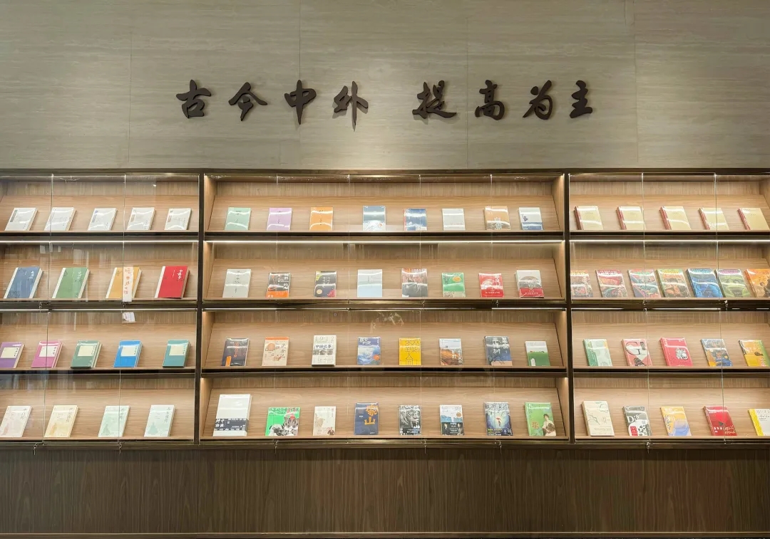 步入新大樓,前臺及左側的圖書展示墻上,“百花齊放 推陳出新”“古今中外 提高為主”的出版方略赫然在目。