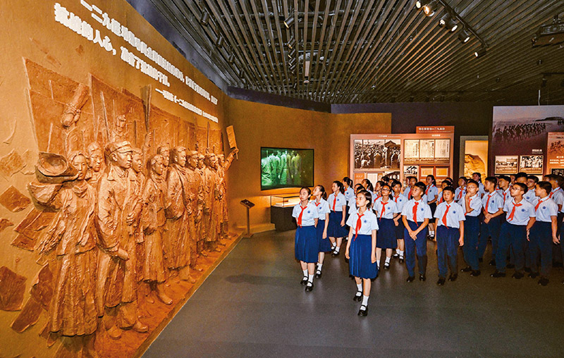 弘揚愛國主義精神,必須把愛國主義教育作為永恒主題。2025年7月7日上午,紀念全民族抗戰爆發88周年儀式暨《為了民族解放與世界和平》主題展覽開幕式在中國人民抗日戰爭紀念館舉行。圖為當日少先隊員參觀主題展覽。 新華社記者 陳曄華/攝