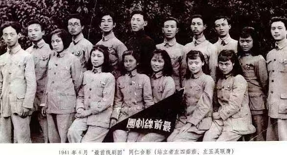 浙西抗戰(zhàn)最前線劇團成員合影。站立者左四茹茄,左五吳聯(lián)膺