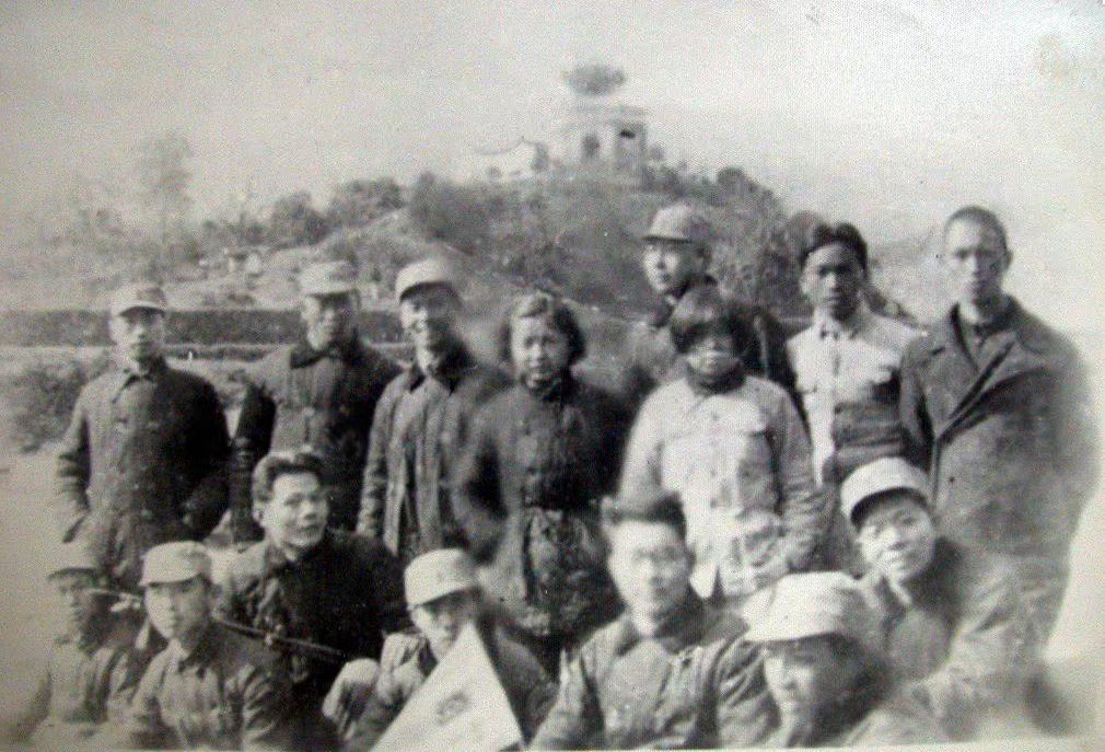 上圖是浙西抗戰(zhàn)農村巡回演出隊成員,蹲者左二是上海美專畢業(yè)生、中共地下黨洪寶鋆