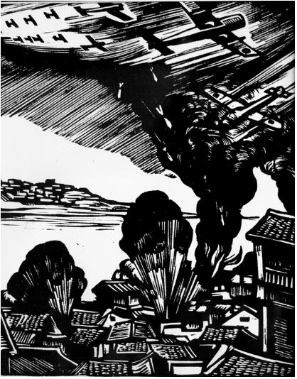 1938年7月,他們在重慶市商會禮堂舉辦的“七七抗戰一周年抗戰木刻畫展”被視為大后方抗戰木刻運動從興起走向全面發展的標志。展覽開幕第二天,重慶《國民公報》即以《大時代中的藝術·木刻在渝初次展覽》為題刊發了長篇特寫,文中寫道:“一個團結而集體地把多量的木刻杰作呈現在重慶士人面前,在重慶還是破題兒的第一遭。因為它是一種新興藝術而又是以抗戰為題材的作品,所以昨天前往參觀的人實在不在少數,統計下來觀眾一天之內不下千余人。木刻共有一百七十余幅,同時木刻畫集也在展覽之列。參加展覽的有劉峴、酆中鐵、王大化、劉鳴寂、馬達、黃云等作家十余人,以酆中鐵、王大化的作品最多。他們都把握著時代,針對著‘抗敵’為前程的。這些藝人們用盡心血戳出來的東西,是充分暴露敵人的殘酷,同胞們的受辱。力的演出,我們要吶喊,我們要怒吼!每幅畫讓你興奮,讓你悲憤,讓你痛心,緊緊地刺激你的心坎。”