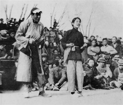 圖為街頭劇《放下你的鞭子》(1937年)劇照。