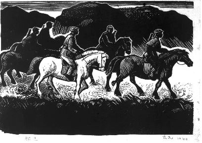 在民族存亡之際,古元決心離開(kāi)故鄉(xiāng)奔赴延安,在當(dāng)時(shí)卻并非為了去學(xué)習(xí)藝術(shù),而是身為一名熱血青年,立志投身抗戰(zhàn)事業(yè),甚至不惜犧牲自己的生命。抵達(dá)延安后,古元首先進(jìn)入陜北公學(xué),接受了為期3個(gè)月的馬列主義理論培訓(xùn)。在此期間,他充分發(fā)揮美術(shù)才能,為學(xué)校宣傳報(bào)欄創(chuàng)作了大量宣傳畫(huà)。其出色的繪畫(huà)水平獲得教員賞識(shí),遂被推薦至魯藝美術(shù)系第三期學(xué)習(xí)。在美術(shù)系,古元學(xué)習(xí)并掌握了木刻技法,他深切感到,木刻是當(dāng)時(shí)最現(xiàn)實(shí)、最直接、最有力量的一種藝術(shù)表現(xiàn)方式。在這一領(lǐng)域,他很快展現(xiàn)出非凡的藝術(shù)才華,創(chuàng)作了《運(yùn)草》《挑水》《圣經(jīng)的時(shí)代過(guò)去了》《離婚訴》等一批優(yōu)秀木刻作品。
