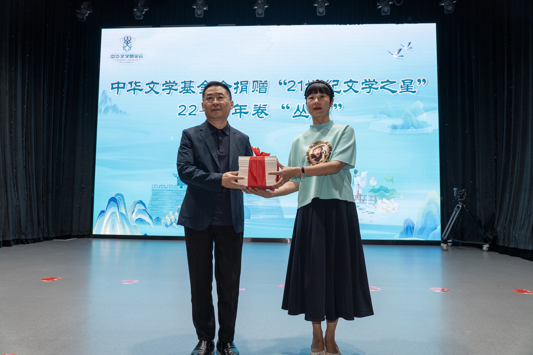 中華文學(xué)基金會秘書長安亞斌向壽縣文學(xué)藝術(shù)院捐贈“21世紀(jì)文學(xué)之星”叢書簽名本