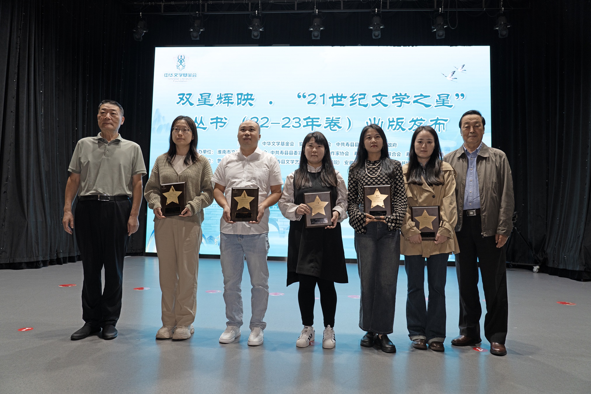 9月29日上午,壽縣文化藝術(shù)中心內(nèi),“21世紀(jì)文學(xué)之星”叢書2022-2023年卷出版發(fā)布會暨2024-2025年卷征選計劃啟動儀式隆重舉行。中華文學(xué)基金會理事長施戰(zhàn)軍,安徽省作協(xié)主席陳先發(fā),安徽省淮南市壽縣縣委常委、宣傳部部長饒潔先后致辭。徐貴祥、彭學(xué)明、王躍文、許春樵、羅偉章、哲貴、肖勤、肖江虹等曾入選叢書的作家代表,以及“叢書”編委、評論家白燁、梁鴻鷹,“叢書”出版單位作家出版社副總編顏慧等出席發(fā)布會。中華文學(xué)基金會秘書長安亞斌向壽縣文學(xué)藝術(shù)院捐贈“21世紀(jì)文學(xué)之星”叢書簽名本,寓意書籍猶如文學(xué)希望的種子,將在壽縣的文學(xué)土壤中扎根,讓文學(xué)精神在這里延續(xù)。在青春洋溢的音樂中,2024-2025年卷征選計劃正式啟動。活動由中華文學(xué)基金會文學(xué)部負(fù)責(zé)人趙蓉主持。