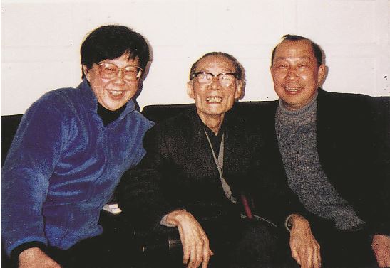 二十世紀八十年代黃會林(左一)、紹武(右一)與夏衍合影
