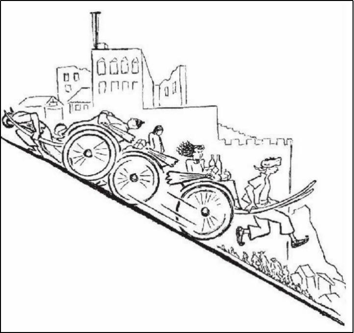 作家在創作歷史主題的著作時,常常不自覺地通過文學性表達塑造一些讓人印象深刻的形象標志,在《戰時中國》中便是貝克所謂中國人特有的“難以形容的微笑”。貝克在重慶注意到人力車夫上陡坡時,把腰彎得很低,臉幾乎要貼到地上,而乘客們懶洋洋、心安理得地坐在車里,面帶著一種“難以形容的微笑”。到了下坡的時候車夫要將車子盡量往后仰,乘客的后腦勺都快著地了,這時“難以形容的微笑”就換回到車夫們的臉上了。在空襲形成的水坑邊洗菜洗衣服的婦人們、從造幣廠下班后逗弄老鼠取樂的夜班工人、一隊正在行軍爬坡的士兵,他們的臉上都掛著這種微笑。